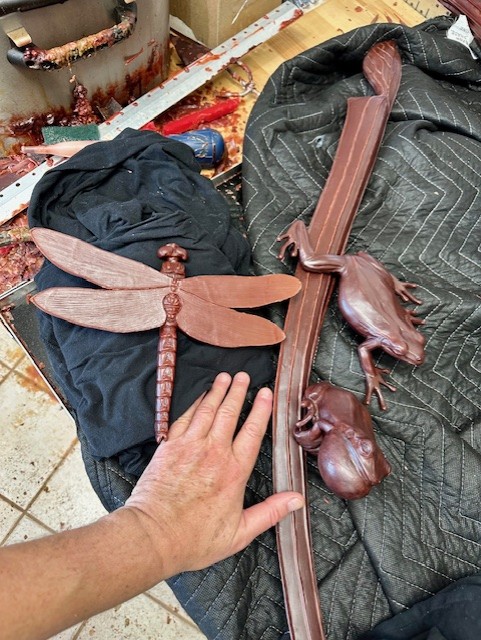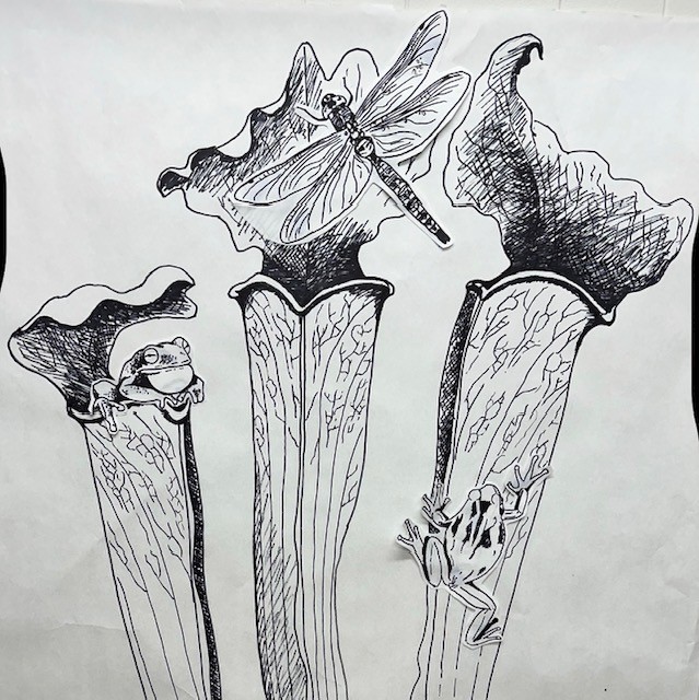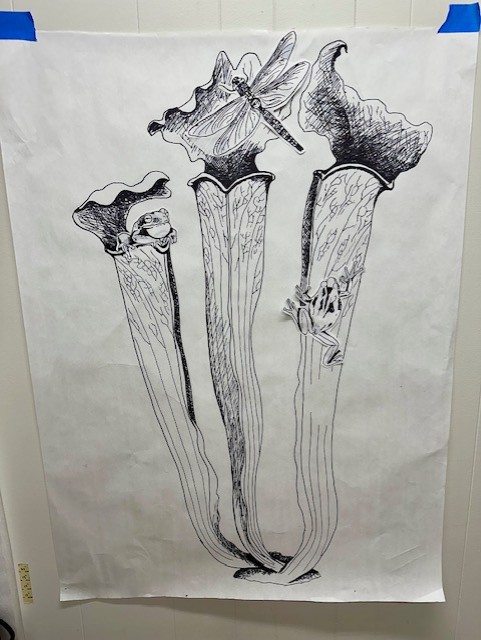 I am currently sculpting a 4-foot tall bronze memorial sculpture for the expansive 34-acre campus gardens of the college, which are the third-largest campus gardens in the United States! This sculpture will feature three pitcher plants, accompanied by several green tree frogs and an exquisite dragonfly! The endangered Green Pitcher Plant (Sarracenia oreophila) is becoming increasingly rare.